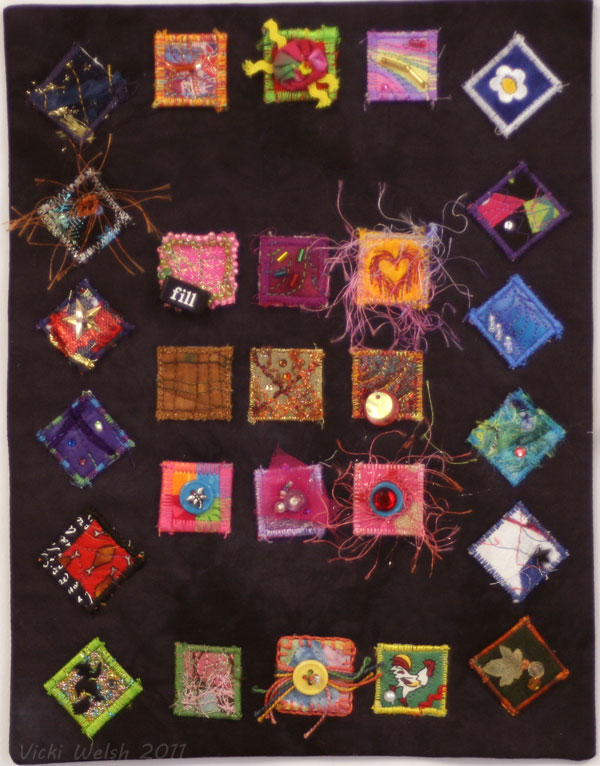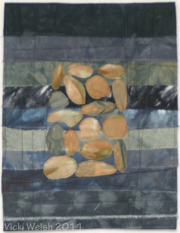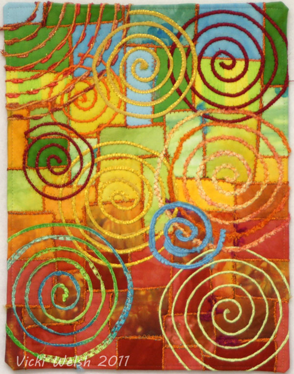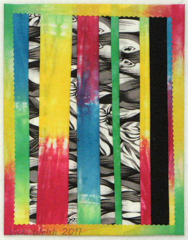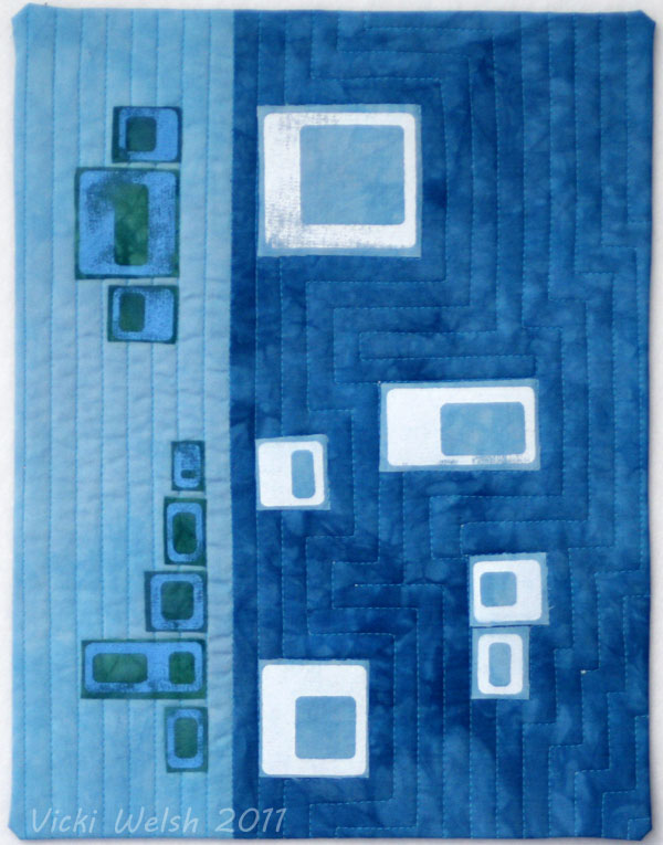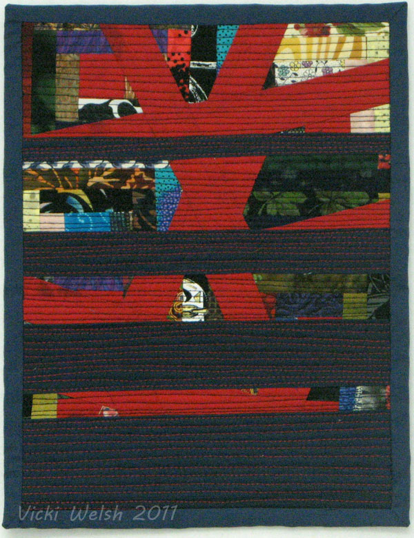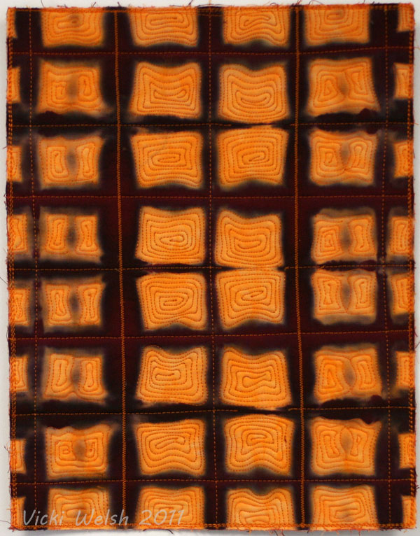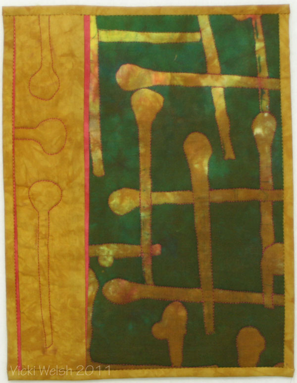 Journal Quilts were all the rage on the internet and among art quilters after about 2008. The bug hit me in 2011 and I set out (and actually completed) one journal quilt each week for the year. They are 8″ x 10″ and it was a great way to explore techniques and design ideas.