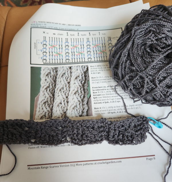 The other project that I’m going to start is a scarf using the yarn leftover from the poncho. I might have enough yarn for 2 scarves. The yarn was expensive enough that I’m determined to use it up.