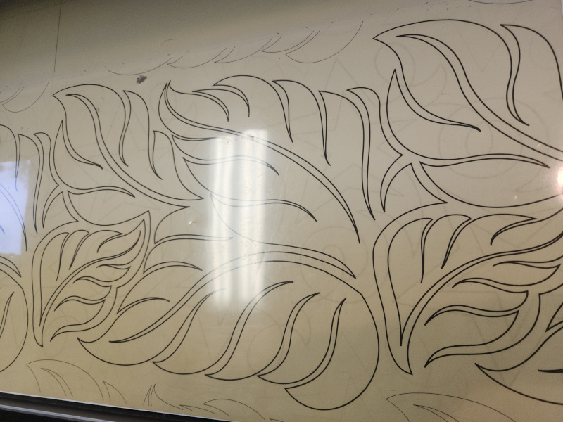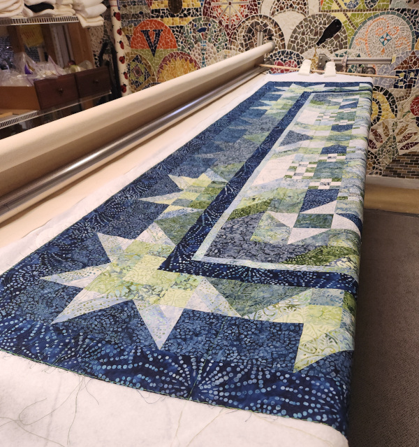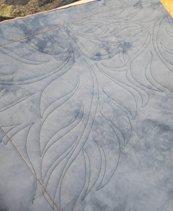 I decided on this pantograph. It’s the most complex one that I have and I don’t use it often. But I feel like the motif really goes with with the batik fabrics.