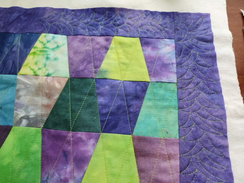 I started with the straight line stitching on this machine. I know this machine hates free motion with “fancy” threads but it’s usually really good with all other stitching. Not this time. I had so much thread breakage and I even tried switching to an embroidery needle.