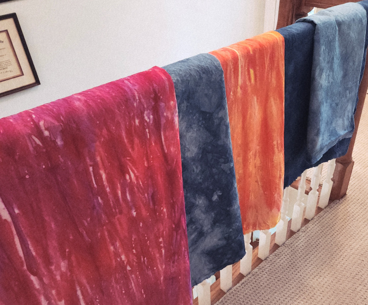 In other news, most of my fabrics for the Eclipse quilt are done. This photo is bad because the lighting in the hall wasn’t great. The fabrics are brighter. I’m not sure I’m totally thrilled but I’ll decide when the last pieces are done. I’ll lay them on the bed and see how they work.