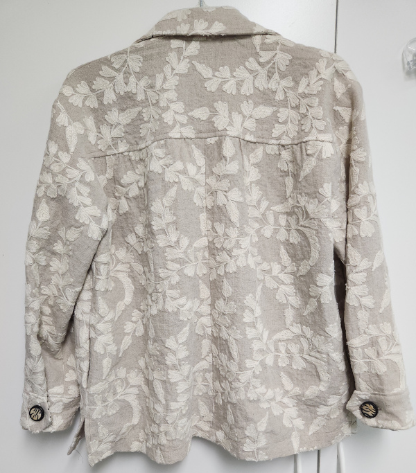 I left the side open a few inches at the hem just to add another detail. If you are interested in the pattern, I did not make the cover view. That sleeve is just too big for a short woman. I basically did view A without patch pockets. I do have side seam pockets because a jacket is useless without pockets!