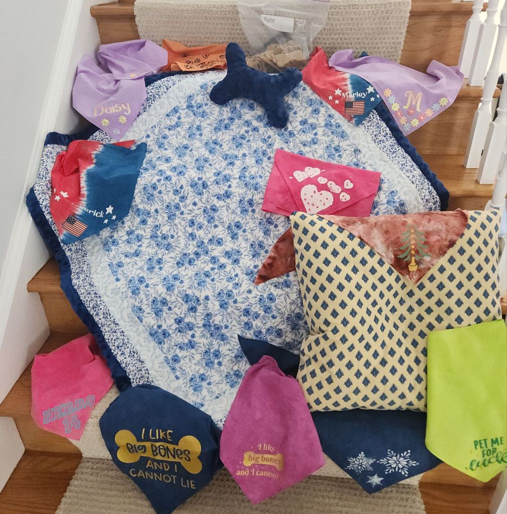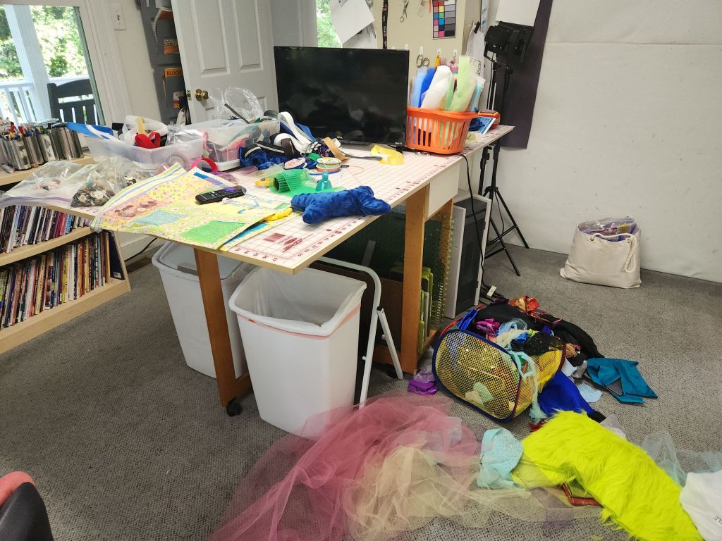 Last night, while watching some disaster documentaries (her choice), we started making some fidget mats from some unused placemats. I’m going to make some of these for donation.