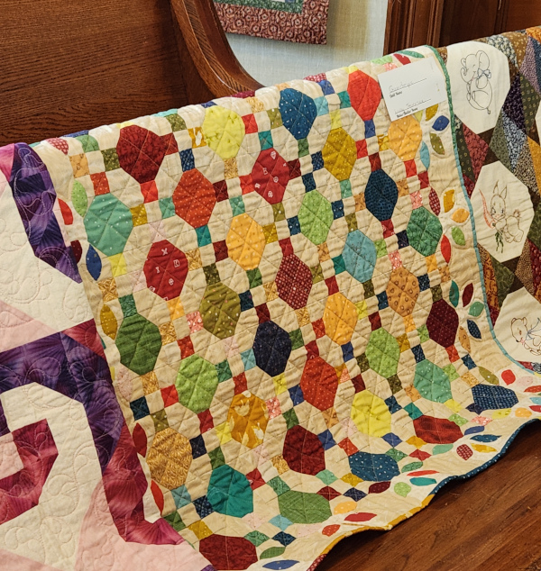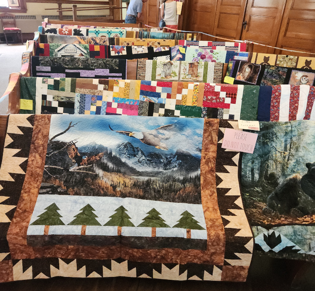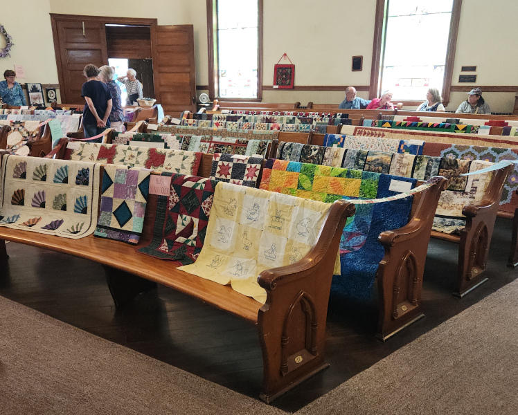 I really like seeing quilts displayed over church pews. The group is called the Country Square Quilters. They reminded me of my own Country School Quilters.