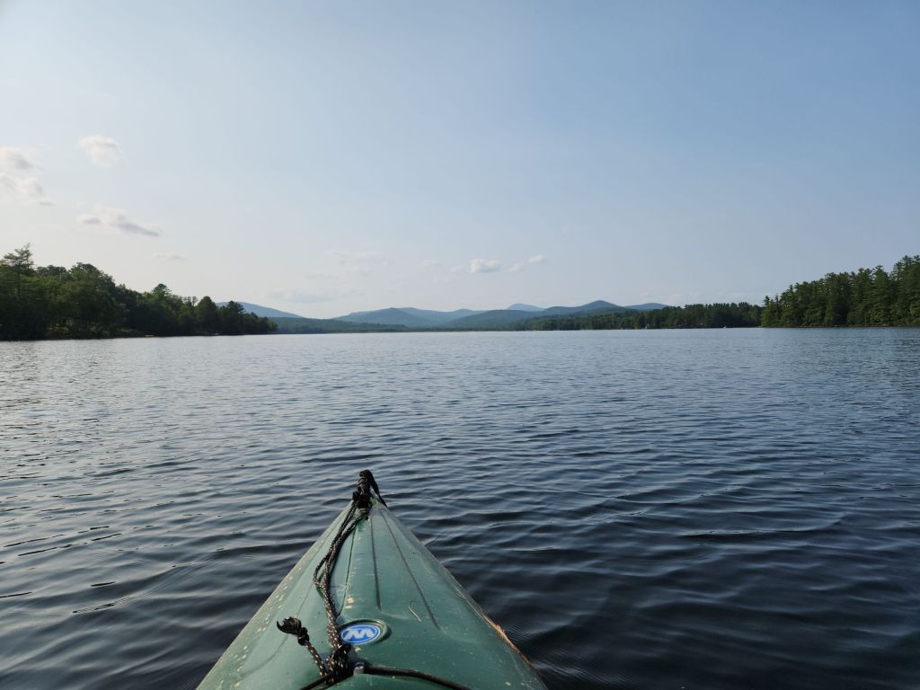 In the afternoon, we got out the floatie chairs for about an hour and then took the kayaks out. It was flat calm all day on the lake, and we basically had the lake to ourselves. There might have been 2 other boats with us. It was lovely.