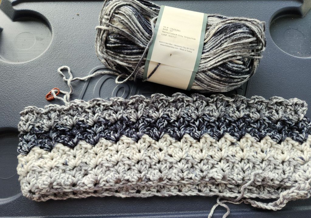 I finished the day with some crochet.  The lighting in the house isn’t terribly bright, so I crochet in the evening. In this pattern, the stitches all go in chain 2 spaces, so it’s really easy to find where to insert the hook. This is going to come together quickly.