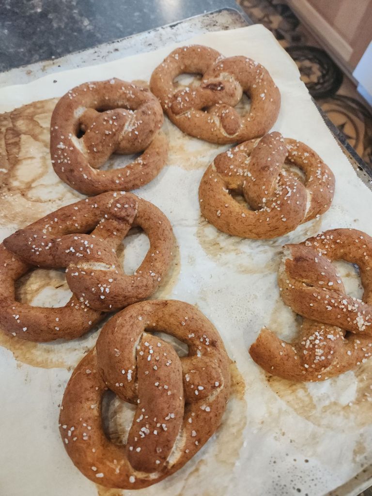 Sunday was busy while I watched the Eagles lose…..they rightly deserved it. I made sourdough pretzels for the first time ever. I’m not sure they are worth the effort very often, but they are a nice occasional treat.