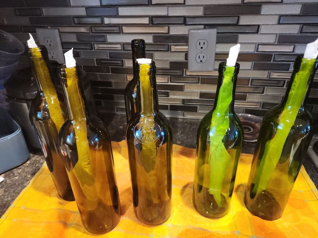I picked up some wine bottles from my friend and washed them yesterday.  I want to test the kiln since it hasn’t been fired up in 2 years. I have an idea for some Christmas gifts. First, I need to see if the kiln still works.