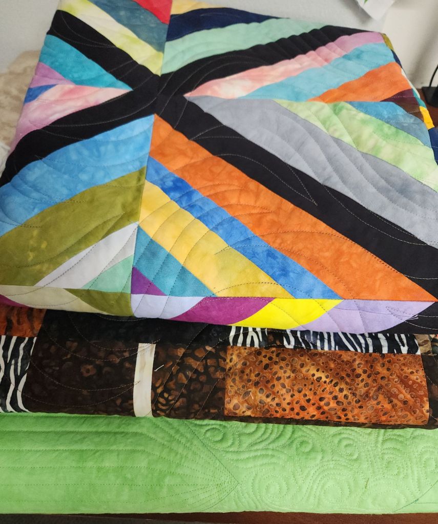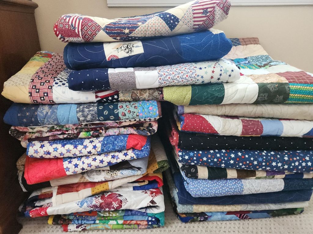 I started yesterday by delivering a new batch of veterans quilts. Conveniently, our contact lives only 4 miles from me. I don’t even have to drive them to Fredericksburg. This delivery had 23 quilts, bringing our YTD total to 103.