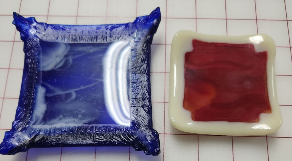 When I did my first full fuse at high temperature, I thought the kiln was working well. I did vaguely wonder why the corners were so rounded, but didn’t think much about it.  I did check the kiln regularly while it was running but missed catching the high temperature.