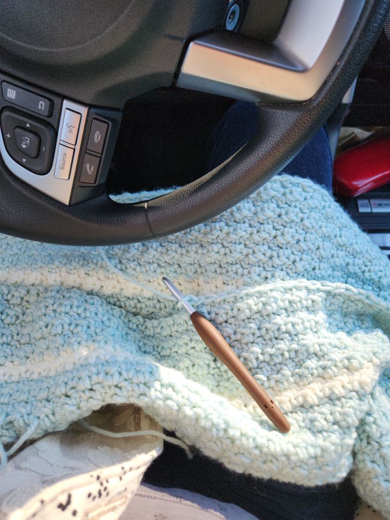Yesterday Mom and I did errands so I didn’t get any making time. But while she was in an appointment I was able to relax in the car with some crochet and YouTube .