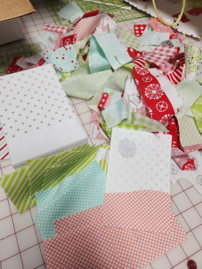 Like starting Christmas cards. The first set will be made from my friends scraps from her Christmas quilt. I think these will come together pretty quickly.