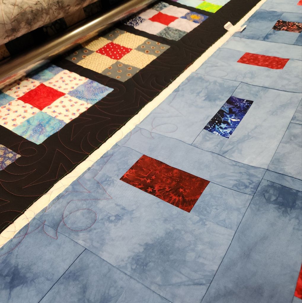 My next postcard idea is coming together but isn’t ready for production yet so I spent the afternoon quilting veterans quilts. I got one done, just one more to go.