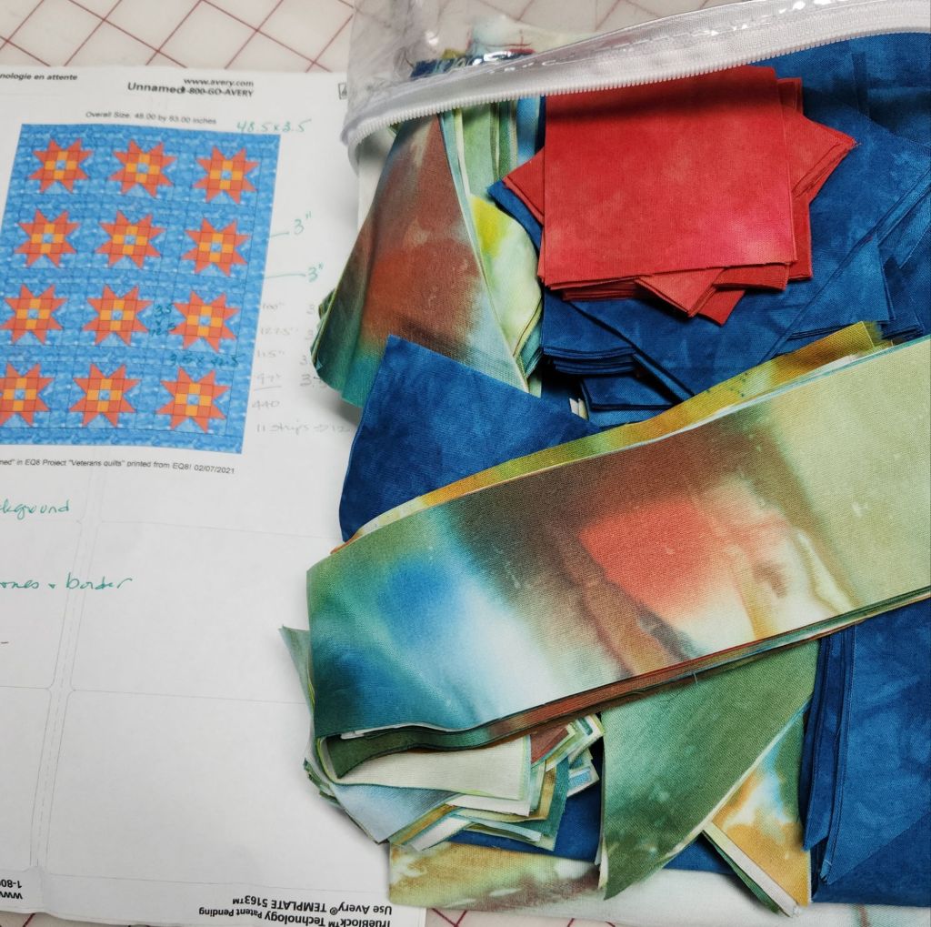 I’ll probably have more tops this weekend. We have quilt club sewing days today and tomorrow. There are always a few new veterans quilt tops finished during this time. I’m starting a new top today. I’m not confident with how this one will look but I’ll give it a try.