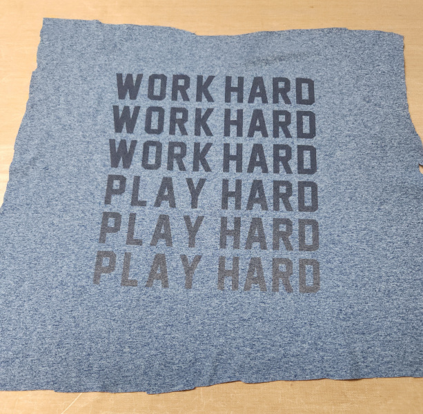 The first step is cutting the t-shirts. I cut a large piece and back it with lightweight interfacing. Then I cut it down to a block that is some multiple of 3″ plus 1/2″ for seam allowance. I think this one cut down to 9.5″ x 15.5″.