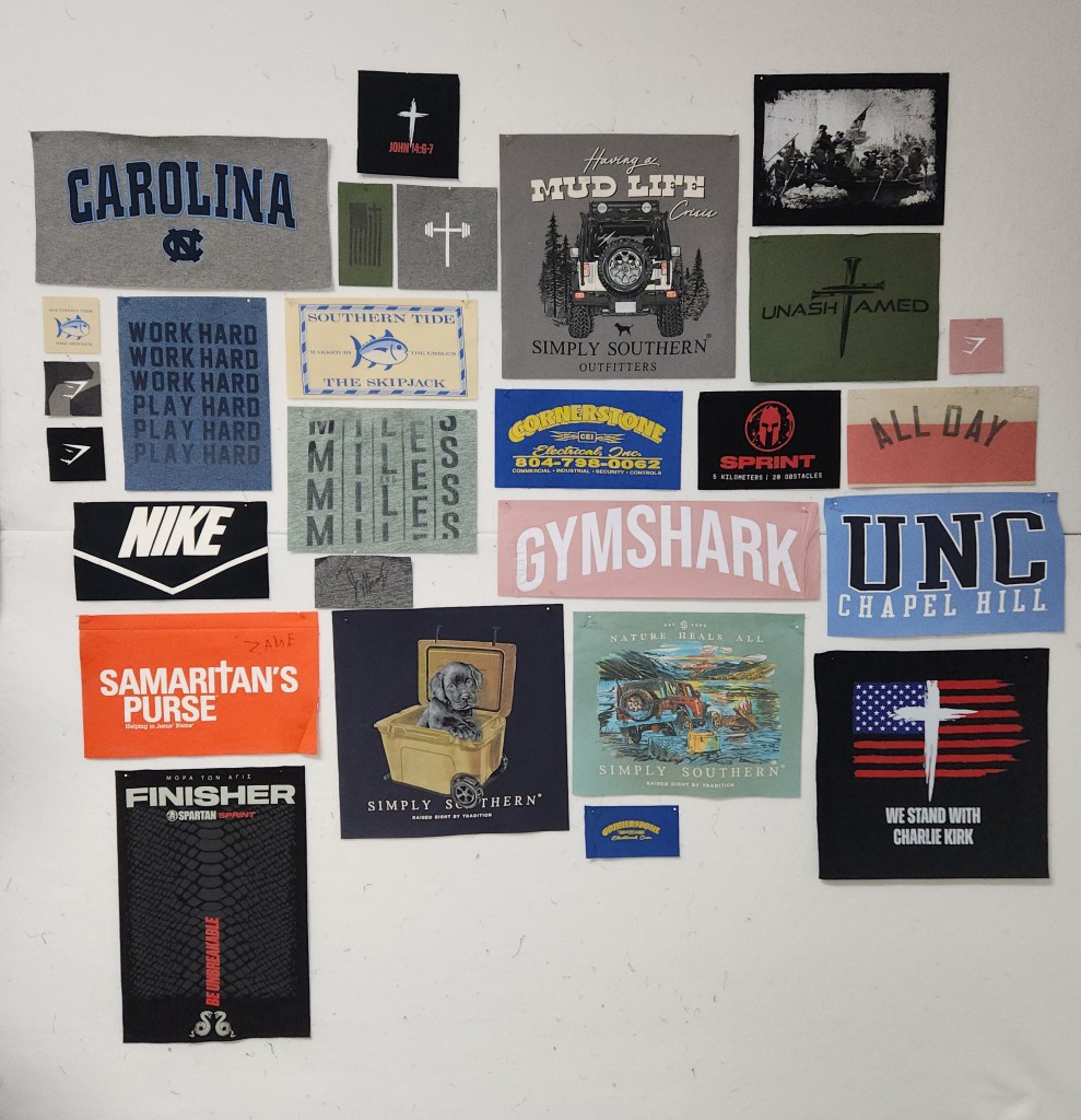 Working on memory quilts is very rewarding but can be a little stressful. I don’t want to make any mistakes and I tend to overthink every decision.. Getting all the shirts cut is a big mental hurdle for me.
