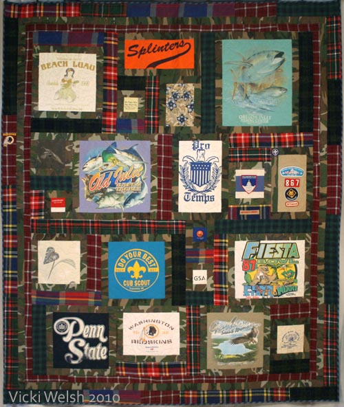 I think this type of memory quilt is so interesting. I made my son a T-shirt quilt many years ago along this same idea and piece by piece I fit the puzzle together.