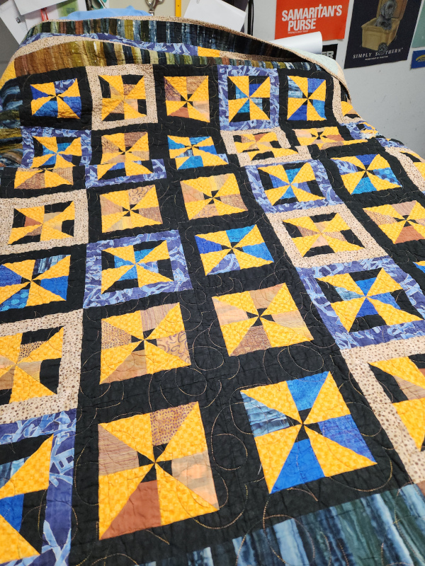 These are 2 quilts that belong to my cousin’s son, Matt. The one on the left was made by my Mom in 2008. We had a quilt book that had you cut out and sew blocks in a way that you got 2 quilts from one. We each made one of the quilts, mine is here.