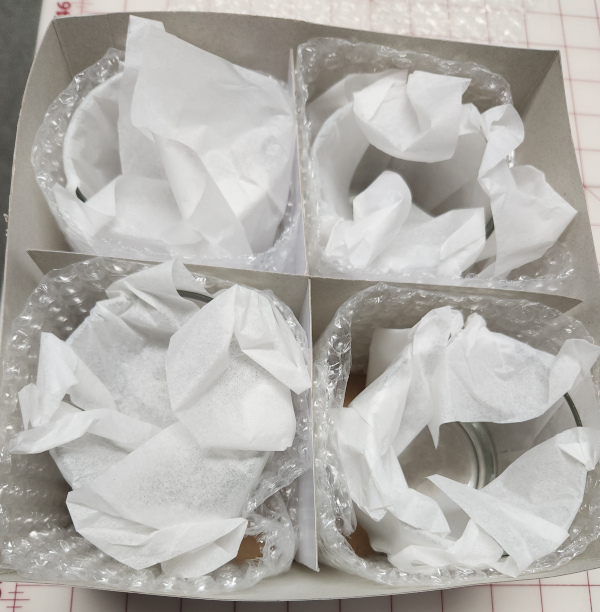 Each glass got tissue paper and bubble wrap with another piece of bubble wrap on top.