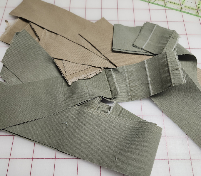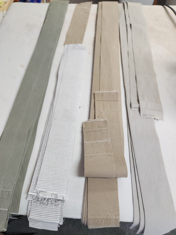 I decided on using khaki and “khaki adjacent” colors for the frames. I harvested this fabric from pants and shorts.