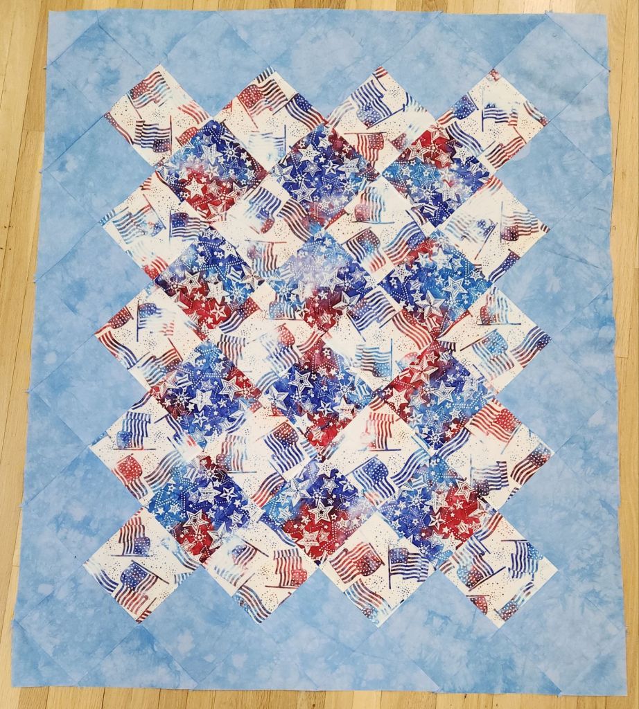 You are amazing how fast you got the HST top sewn together! It is very pretty. I’m not a fan of patriotic fabric, but that quilt top is good looking! Sorry to read about spraining your ankle. I hope it feels better soon. Patty