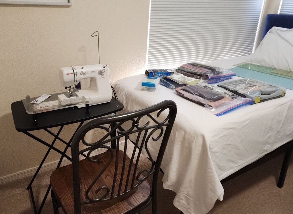 We unpacked when we arrived Saturday and I set up my sewing nook yesterday. We went for a long walk, lifted weights in the gym and watched some football to round out our first day. We even had a little sun time to start topping up the vitamin D.