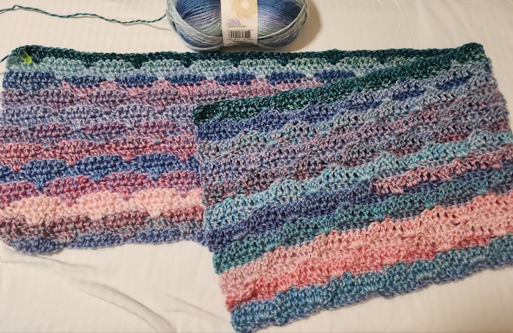 During the games I made some progress on my big blanket. I’m on the second of 6 skeins.
