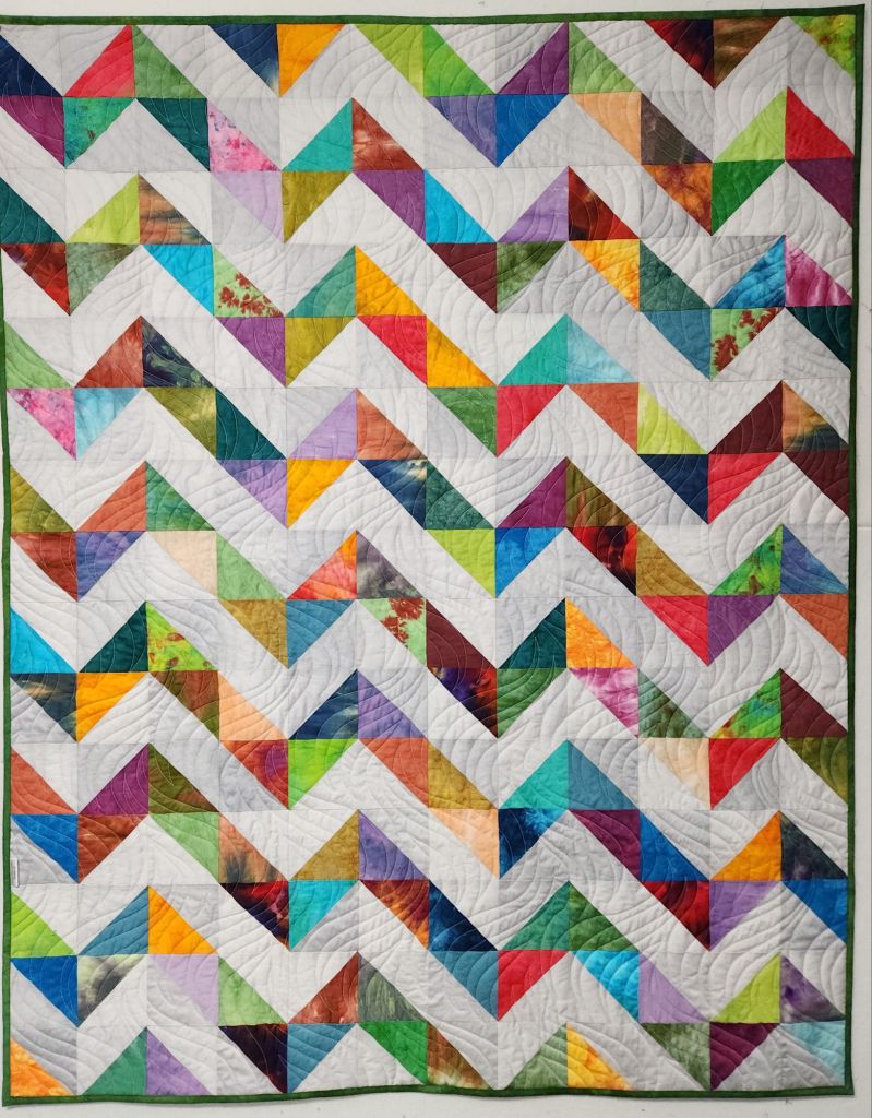 I was back in the sewing room this weekend and my first project was getting the binding on this veterans quilt. I’ve made this pattern a couple of times and I will make it again. I cut the HST pieces with my GO Cutter so the sewing is fast.