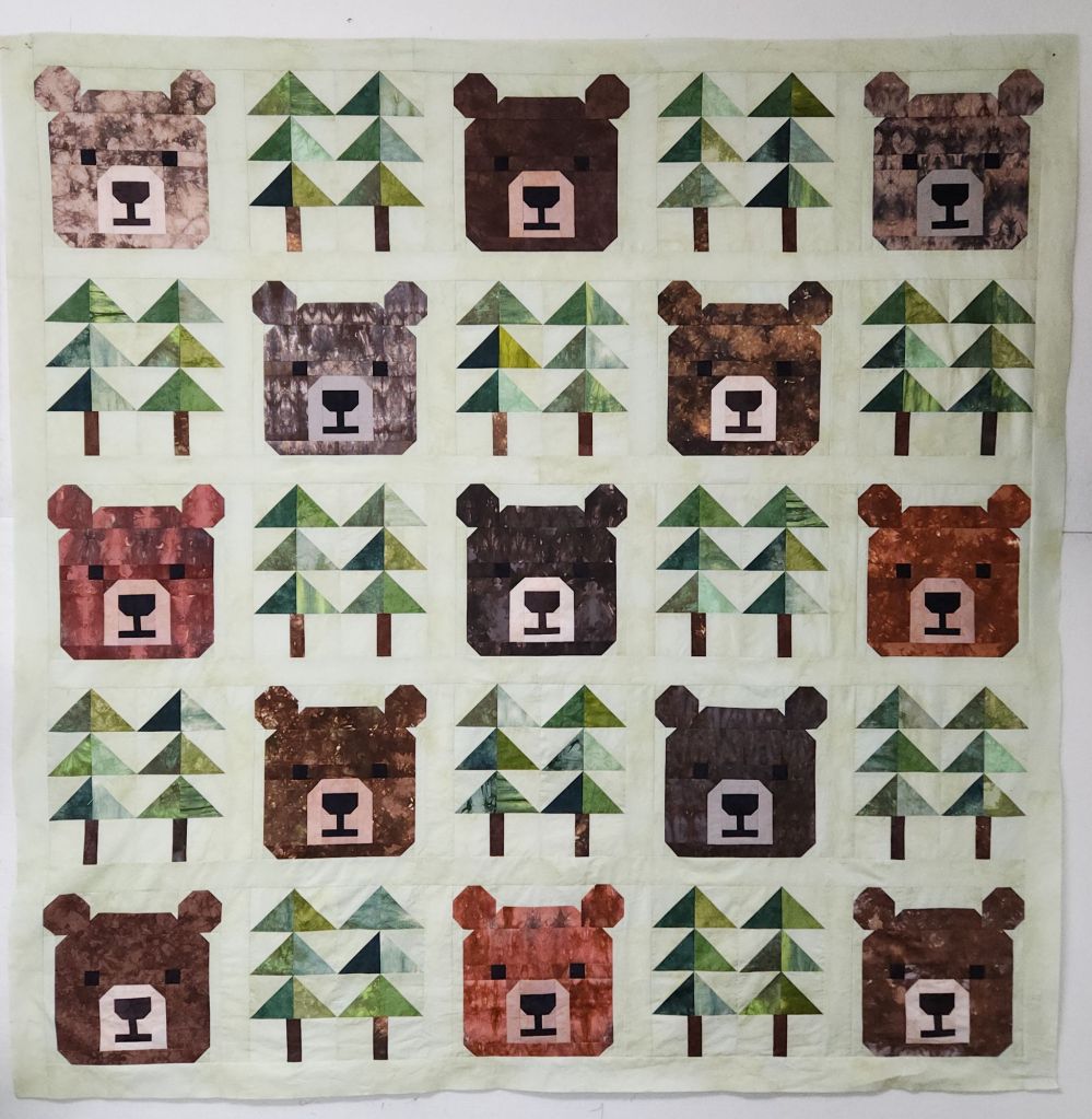 Next I got back to the bear quilt and got the rows together. I have 2 borders to add and this one will be ready for quilting. I still need to dye a back but there’s no hurry. This quilt isn’t due until January.