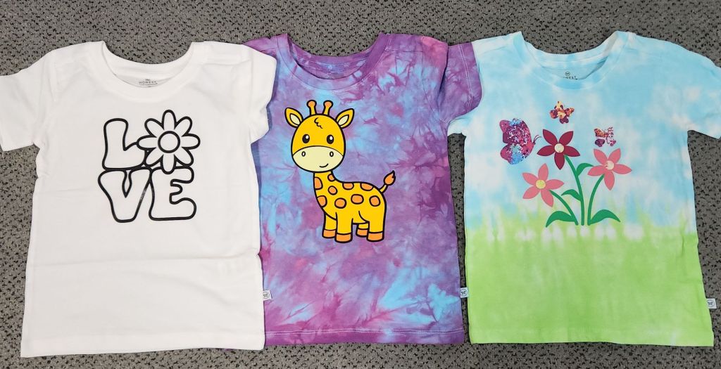 I’m making summer shirts for Cora. There are 10 in all. I got the first 3 made last night. The white one will be a beach craft project. I bought fabric markers for her to color it.