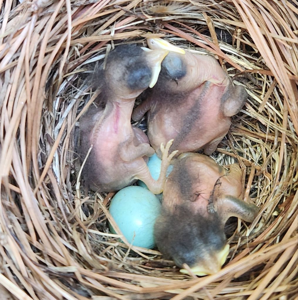 I did get out to check on the baby Bluebirds yesterday. Two of the eggs didn’t hatch but we have 3 that look healthy.