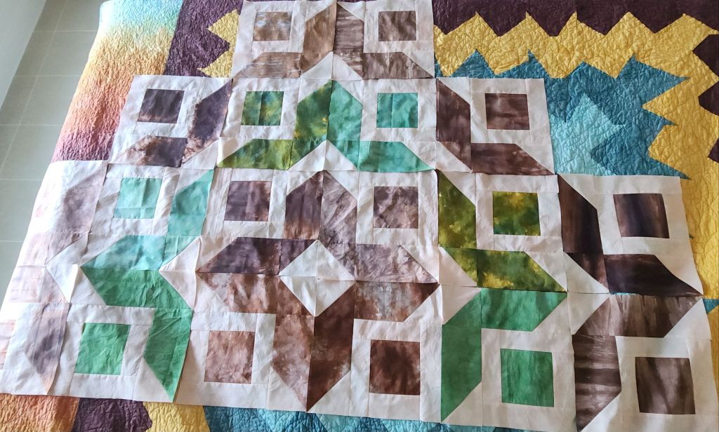 There are two block designs. Of this design, I got all the brown ones done and half the green ones.