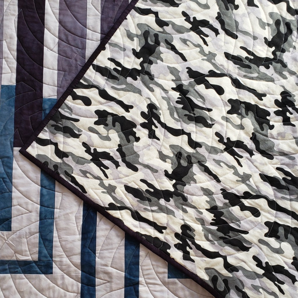 The groom is a hunter so I selected a camouflage print for the backing. Now I can be sure that if they don’t like the front of the quilt I know they will love the back!