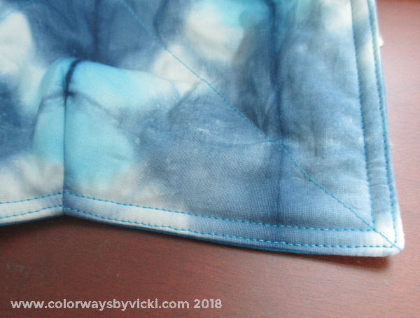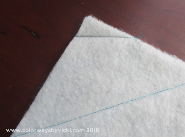 Mark an “X” diagonal on each piece and stitch on the lines to quilt the batting to the fabric. I found that a pencil was my best marking tool.