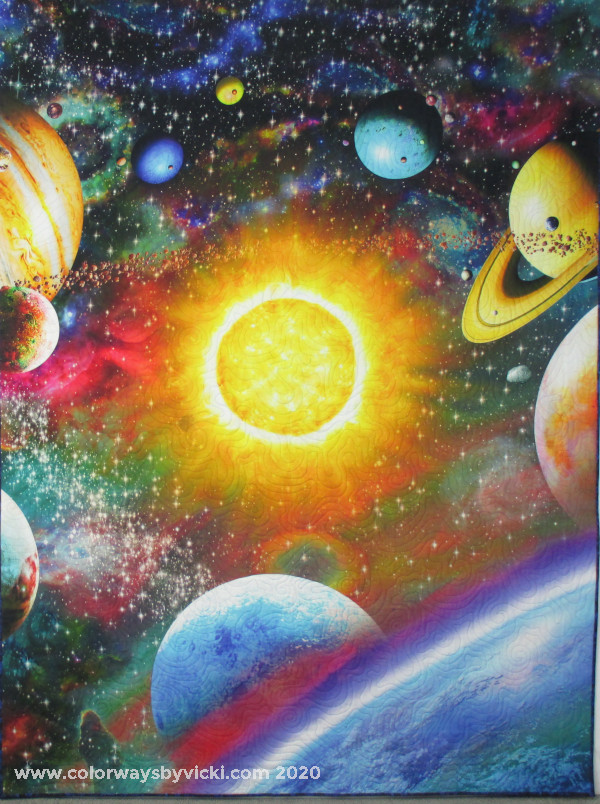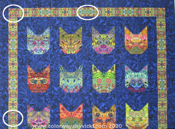 The name Corona Cats from the space-themed backing fabric and also as a nod to this being made during the corona-virus pandemic. But mostly it’s about the backing fabric.