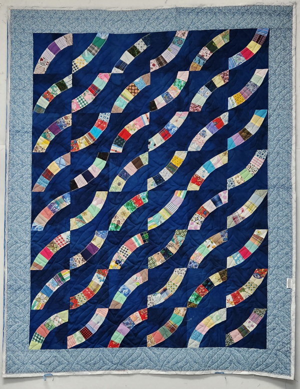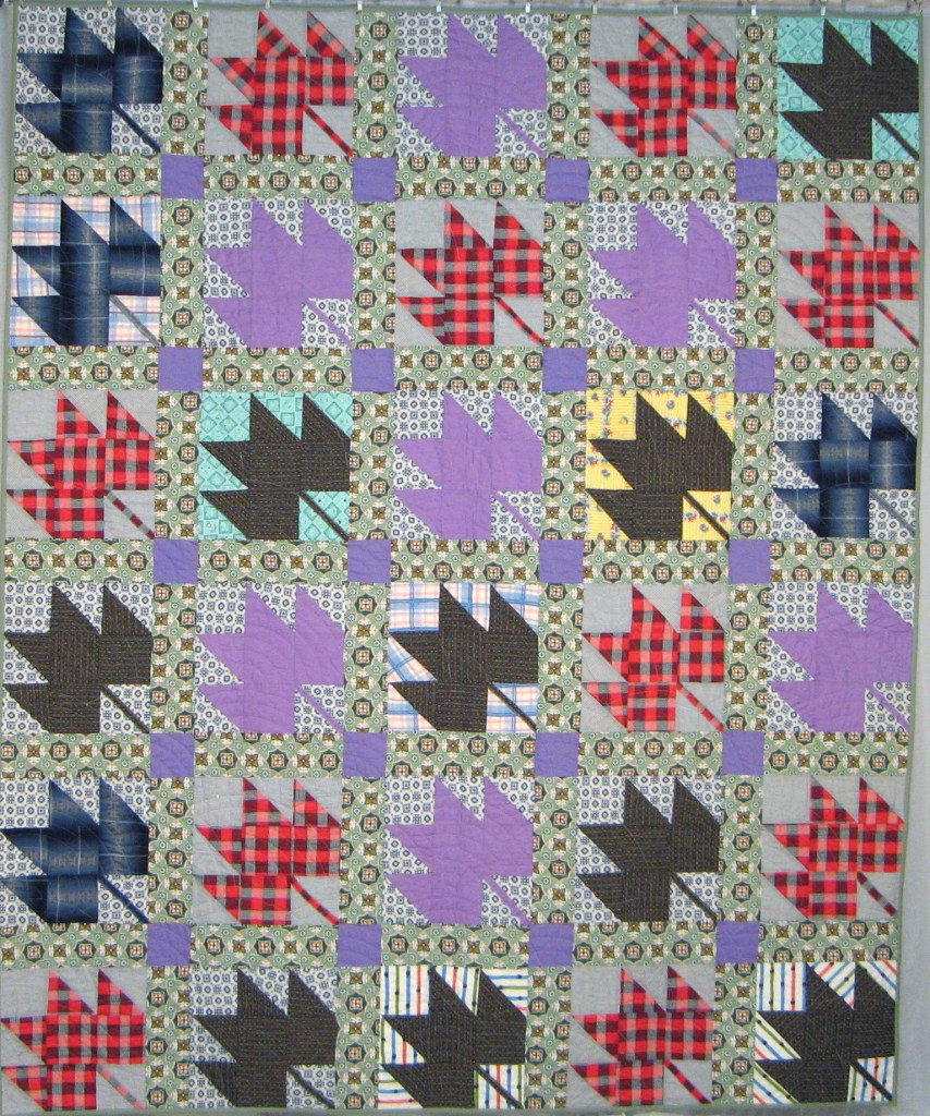 This quilt was made from Broken Wheel blocks pieced by my Great Grandmother Flora Texas Goad Rakes. Mom made the quilt and I quilted it.