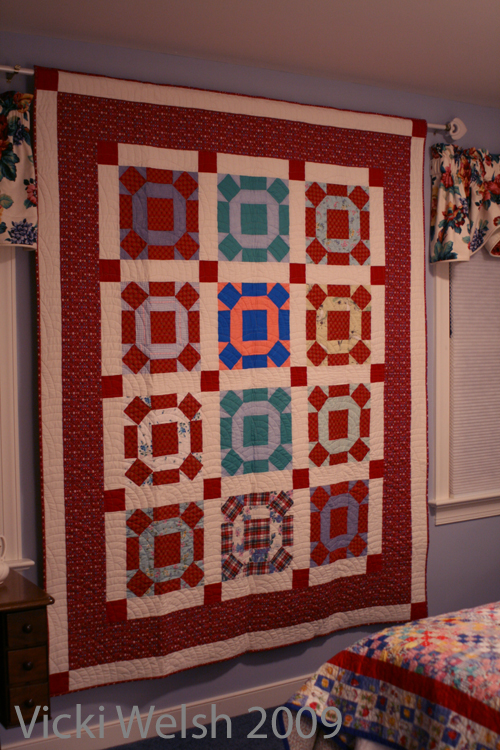 This was the quilt that she made for me when I was a child. It was on my bed until I left for college. I remade it using her sample blocks. You can read about it here.