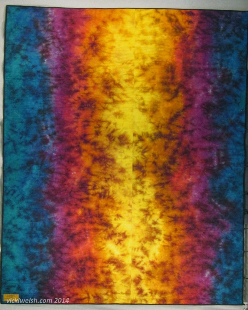 It’s quilted with a simple wavy cross hatch using gray So Fine thread in the needle and Bottom Line in the bobbin. This quilt will be a bedspread for a twin bed so it didn’t need anything fancy. But I couldn’t help putting a fancy back on it! This is the Sundance gradient. I sewed 2 lengths together on the yellow edge.