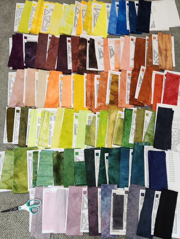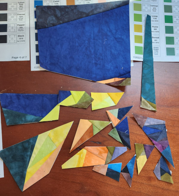 This one was less than 6 months from start to finish. I found the Goldfinch pattern at LegitKits.com after seeing the company at a quilt show in February. After seeing the patterns I couldn’t stop thinking about them so the next week I jumped online and picked out the Goldfinch to try. Most people buy these at full kits with solid Kona fabrics provided. I decided to make mine with hand dyed fabrics.