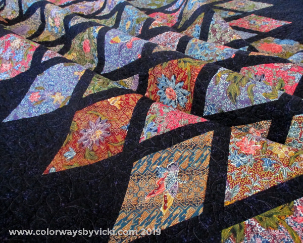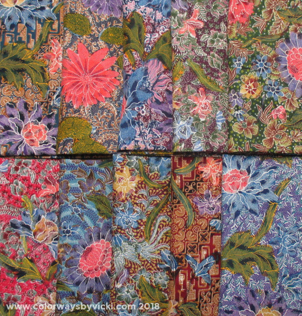 This quilt started with the purchase of these Indonesian Batik fabrics in February 2018. I bought then from Handloom Batiks at the Mid-Atlantic Quilt Show. They are the most expensive quilt fabrics that I’ve every bought. They actually make hand dyed fabrics seem a bargain!