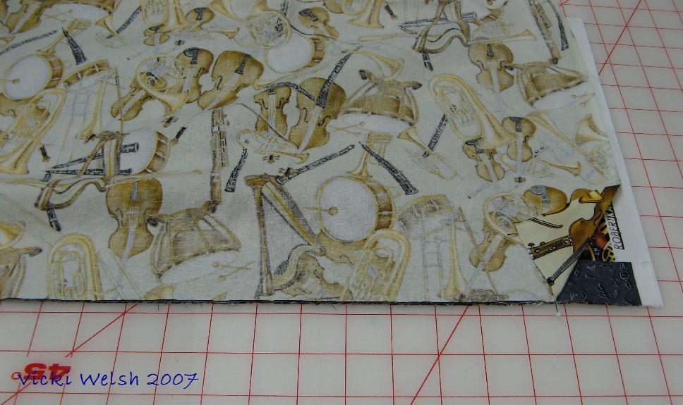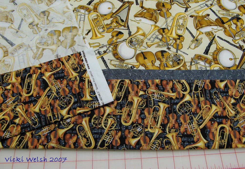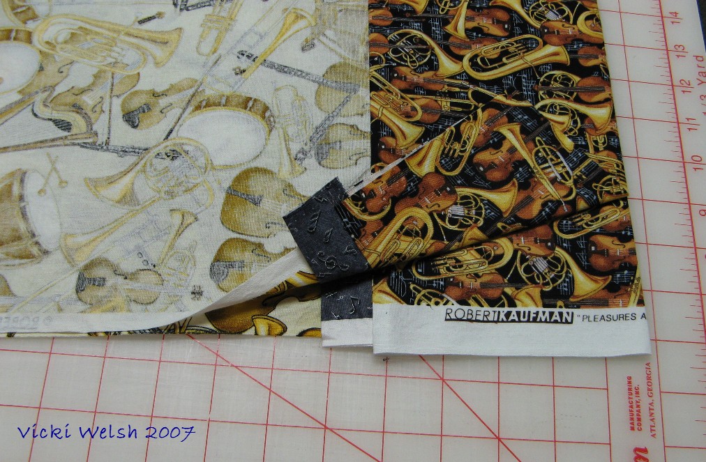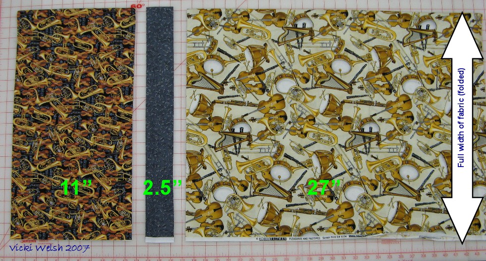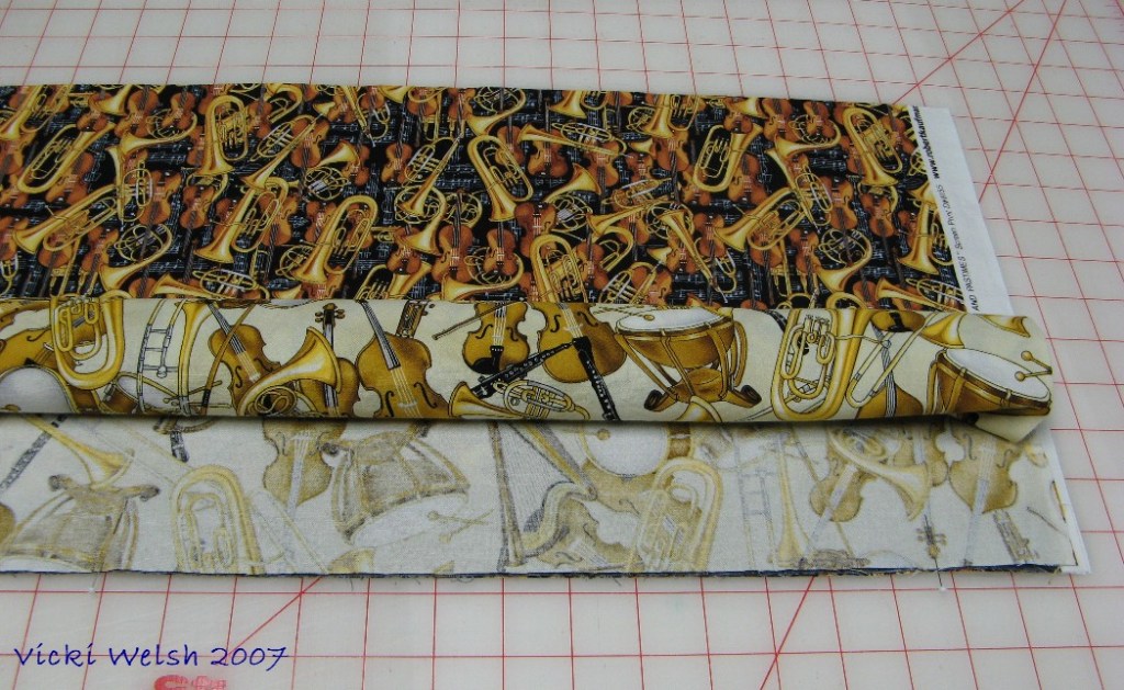 Cut 3 fabrics all using the full width of fabric. In the photo the fabric is shown folded in half across the bolt width.