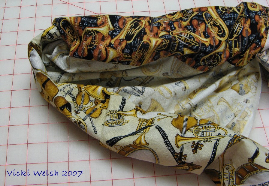 It looks like a mess but here’s the fun part – turn the HEM right side out by pulling the BODY rolling the HEM back on itself.