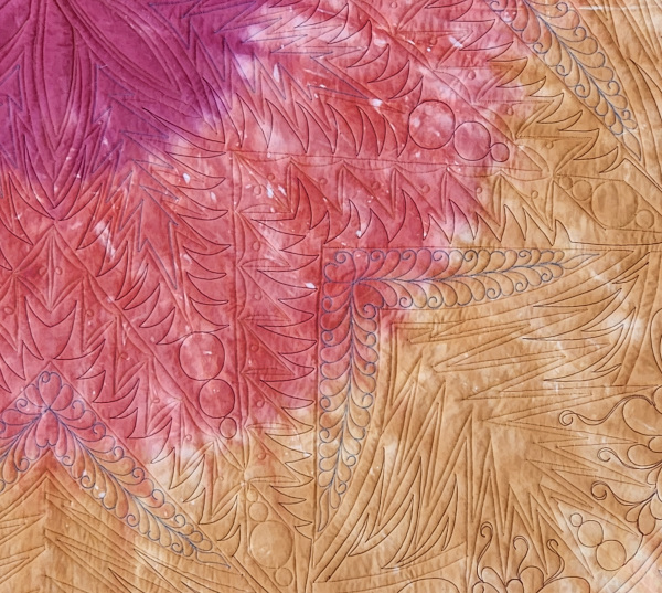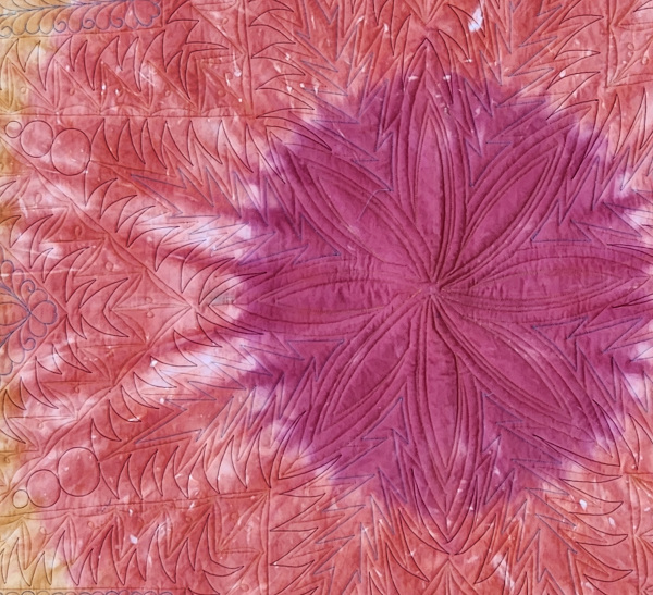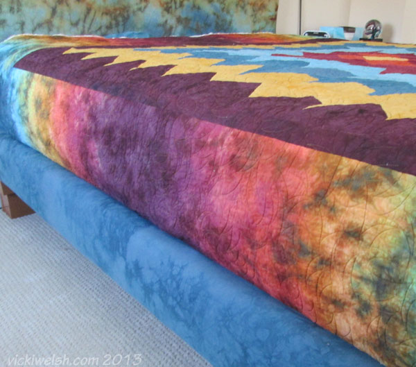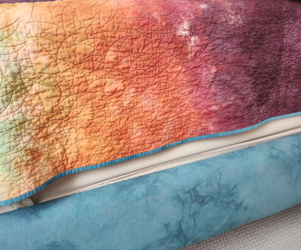 The quilt is reversible with this hand dyed backing in the same color palette. I might use this size in the summer.