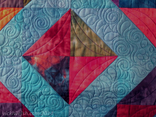 The back is another hand dyed fabric and I think the quilting shows off really nicely on it. Can I just say once more how thrilled I am with the stitch quality and tension on my Innova? It’s absolutely perfect!