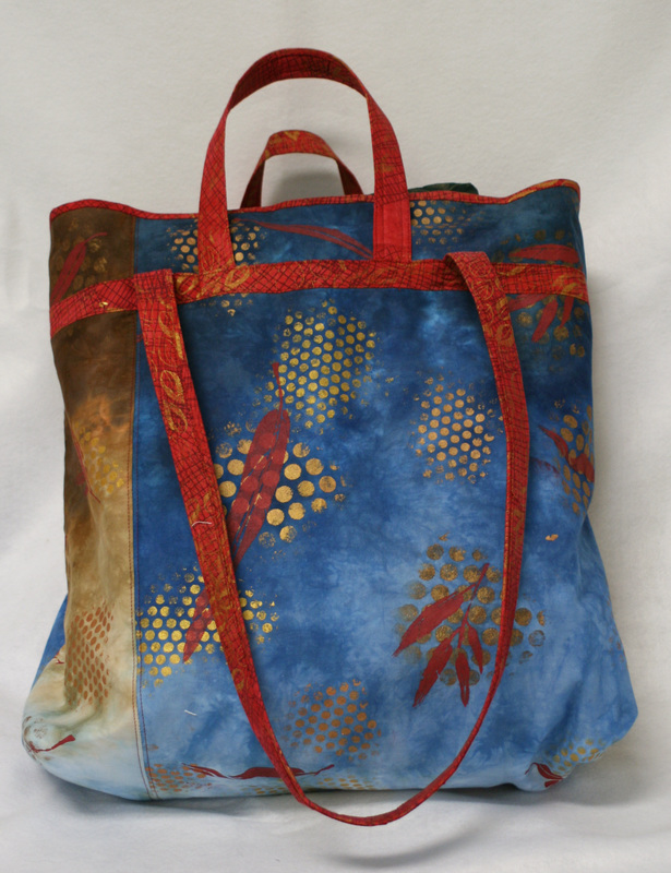 A super-sized tote is useful for lots of things but I designed this tote so that I could easily carry 2 or more quilts to my Guild meetings. The tote is about 24″ wide and 20″ tall. It is designed with 2 sets of handles so that you can carry it as a tote or as a shoulder bag. It’s perfect for short people, like me, because it doesn’t drag the ground with your arm fully extended.