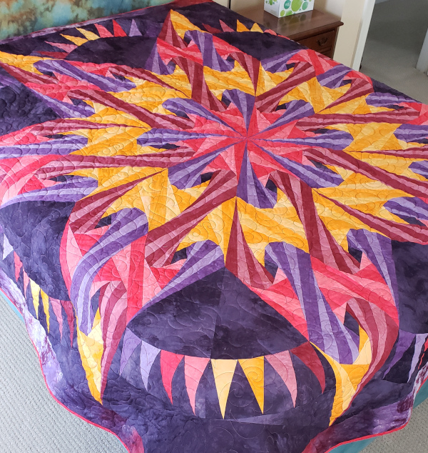 I had been wanting to make a quilt using the Summer Sunset gradient (in the border) and this was a great opportunity. Because of the seam build up I couldn’t do any custom quilting but the open pantograph will keep this one soft enough to sleep under.