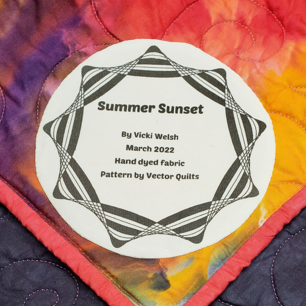 This is the label for the big quilt. I use Wild Gears to make frames for all of my labels. I print and draw on paper and them photocopy the design to fabric.
