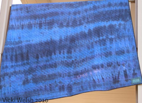 It’s large, about 92″ x 104″. The backing is hand dyed flannel.