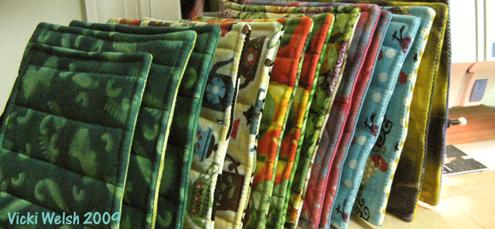 I have made dozens of these potholders in both sizes. They are so popular that people now ask for them for gifts. There are 2 sizes (rectangle and square) included but you could adjust the instructions to make them any size or shape that you want. You can download the pattern here.
