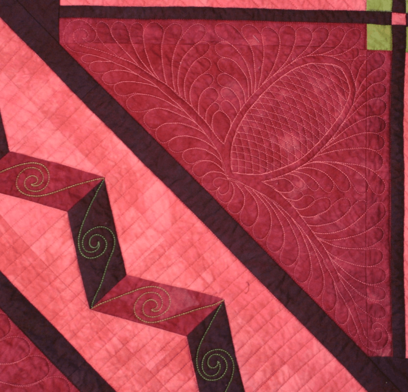 I got pretty good at quilting on the APQS but if you could see those feathers up close you would see the bobble and twitches. I never had total control over the machine. It was difficult to stitch exactly over previous stitches and I would get frequent bumps in lines.